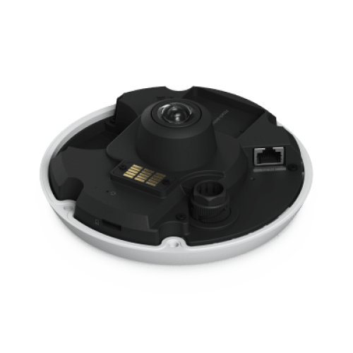 Cámara PoE de 12 MP resistente a la intemperie y al vandalismo con cobertura panorámica de 360°, funcionalidad de giro, inclinación y zoom digitales y funcionalidad IR inteligente.