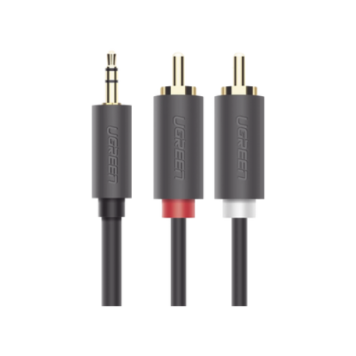 Cable Adaptador de 3.5mm Macho a 2 RCA Macho / 3 Metros (9.84 Pies) / Color Gris / Blindaje Múltiple / ABS / Alta Calidad