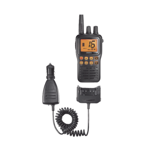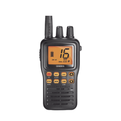 El Uniden MHS75 es una radio marina VHF portátil, compacta y resistente que viene equipada con características sobresalientes como Memory Channel Scan, clasificación de impermeabilidad IPX8 y una duración de batería de 12 horas. También se incluyen accesorios como un cargador de CC rápido con clip, una correa para la muñeca y baterías de litio recargables. El MHS75 es una radio marina VHF bidireccional muy fiable.