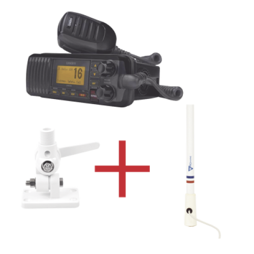 Kit de radio UM385BK | mas antena marina de fibra de vidrio TX-5206-SYS y soporte para antena 4186