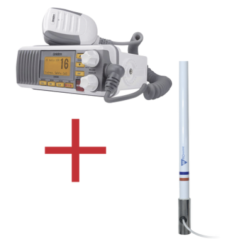 Kit de radio UM385 | mas antena marina de fibra de vidrio TX-5101-SYS fabricada en fibra de vidrio con base roscable de acero inoxidable