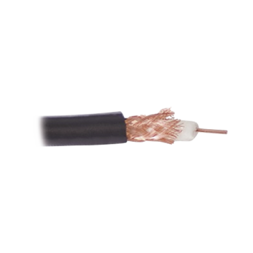 Conductor de cobre solido, aislamiento de polietileno espumado tipo SFS® (Skin Foam Skin), blindaje electromagnético contra interferencias (Malla de cobre al 80% de cobertura), cubierta de PVC (Policloruro de vinilo) con propiedades Retardantes a la flama y resistente a los rayos UV.