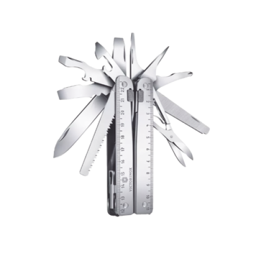 Cuando necesitas más que una navaja de bolsillo, la Swiss Tool X entra en acción: una caja de herramientas completa elegantemente comprimida dentro de una sofisticada multiherramienta. Una sabelotodo para llevar a todas partes y hacer cualquier trabajo; y su belleza es una clara prueba de que no es necesario sacrificar diseño por funcionalidad. Encontrarás millones de maneras de utilizar este caballo de batalla ya sea en la casa, el trabajo o en medio de la naturaleza.