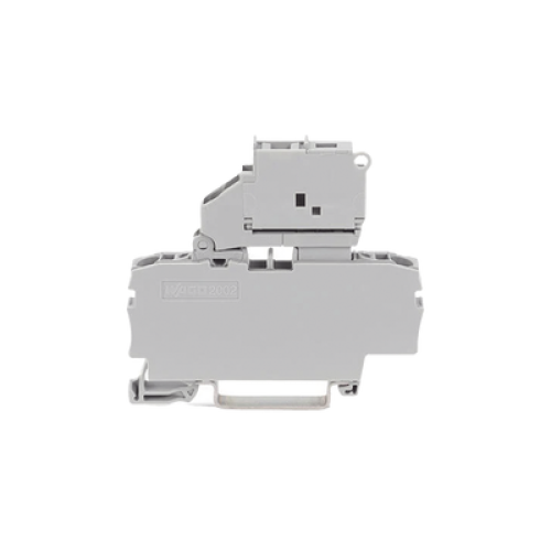 Borna Portafusibles, 2 Conductores, Portafusible Basculante, Placa Final, Fusible Tipo G 5 x 20 mm, Sin Indicación de Defecto, Carril DIN 35 x 15 y 35 x 7,5, 2,5 mm², Push-in CAGE CLAMP®, 6,3 A, 250 V, Gris