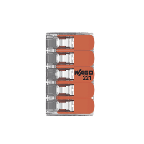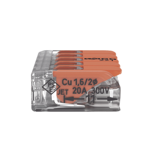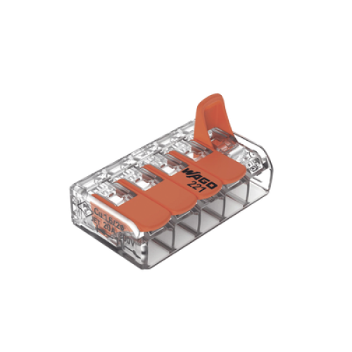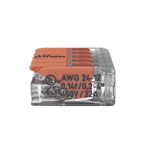 Conector Eléctrico / Borne de Conexión con Palancas / 5 Puntos / 32A 450V / CAGE CLAMP® / Policarbonato Transparente / Para 0.14-4 mm²
