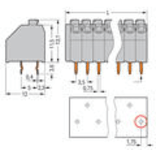Bloque Terminal PCB / 8 Polos / Push-in CAGE CLAMP® / 1.5 mm² / 8A 320V / Pin Spacing 3.5 mm / Botón Push / THT / Policarbonato V0