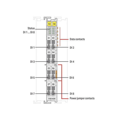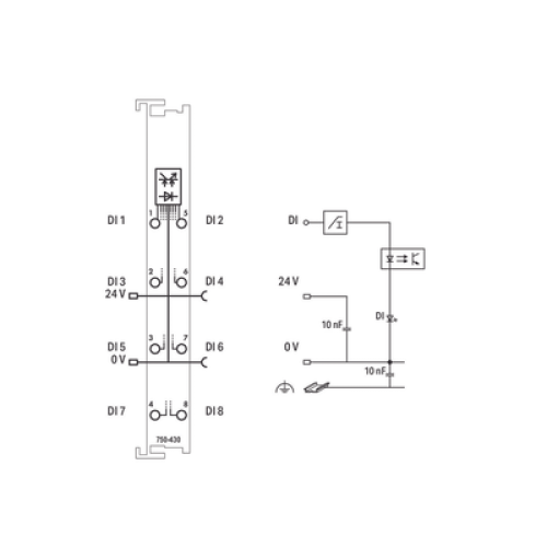 Módulo de Entrada Digital / 8 Canales / 24 VDC / Filtro 3 ms / Aislamiento 500 V / CAGE CLAMP® / DIN Rail / IP20