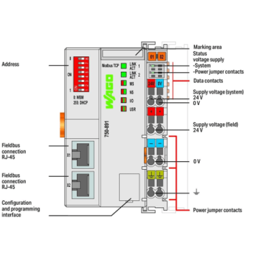 Controlador Modbus TCP / 4ª Generación / 2 x ETHERNET / Switch Integrado / CEI 61131-3 / 4 MB Memoria / IP20 / 24 VCC