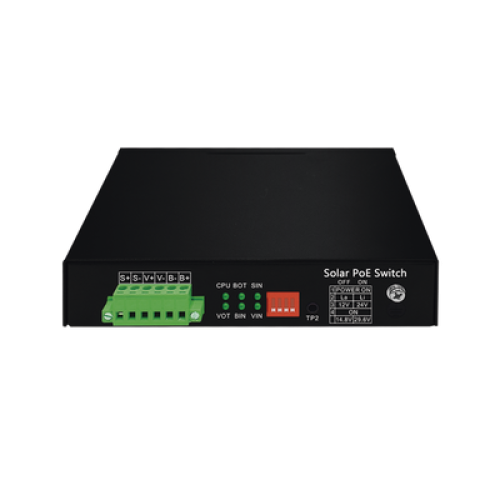 Controlador Solar de 15A con Switch PoE / 1 Puertos Gigabit PoE 802.3 bt / 2 Puertos PoE 802.3 af/at / 2 Puertos PoE Pasivo 24/48 Vcc / 1 Puerto SFP / No administrable