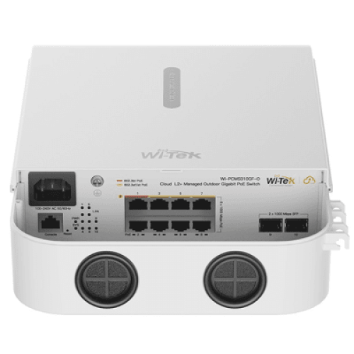 Switch PoE Gigabit 8 Puertos / 2 SFP Uplink / PoE++ 802.3bt 90W Port 1-2 / PoE+ 802.3at 30W Port 3-8 / 110W Budget Total / 20Gbps Switching / Fanless / Wall-Pole Mount / Industrial -30°C a 60°C