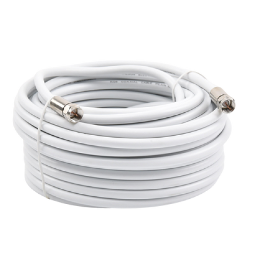 Jumper Coaxial con Cable Tipo RG-6 en Color Blanco de 15.24 Metros (50 Pies) de Longitud y Conectores F Macho en Ambos Extremos. 75 Ohm de Impedancia.
