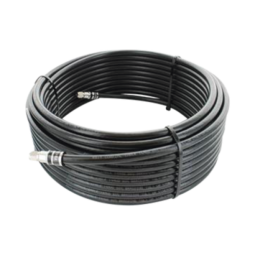 El cable coaxial WILSON RG11 951175 de baja pérdida, es un cable equivalente al LMR400-75 de 10.29 mm de diámetro que permite conexiones entre el amplificador, la antena interior, antena exterior y/o divisores de potencia. Este cable para interior y exterior tiene 22.86 metros de largo, recubierto en color negro y está equipado con conectores F-Macho en ambos extremos.
