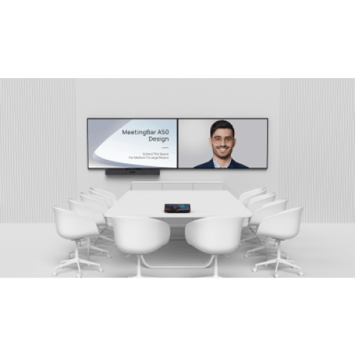 El Yealink MeetingBar A50 es una barra de colaboración de video todo-en-uno premium diseñada para salas de conferencias medianas y grandes. Equipado con tecnología de inteligencia artificial avanzada, ofrece capacidades de audio y video de última generación con sonido cristalino y visuales ultra HD. Compatible con Microsoft MDEP para mayor seguridad y experiencias de implementación optimizadas, además de soporte nativo para Microsoft Teams Rooms, Zoom y RingCentral.