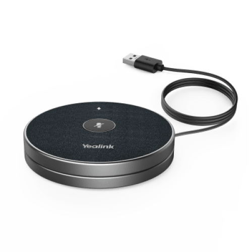 Micrófono inalámbrico 360° VCM36W-PACKAGE de Yealink para videoconferencias, con amplio alcance y cancelación de ruido.