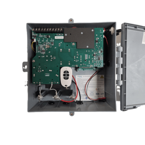 Energizador para Cerco Eléctrico AF-CR / 10,000 Volts / 10,000 Metros Lineales / Alimentación AC 127-220V o Solar / Control Remoto RF 433 MHz / Sistema de Alarma Integrado / Salida Auxiliar 12Vdc 1.5A / Respaldo con Batería Interna 4A